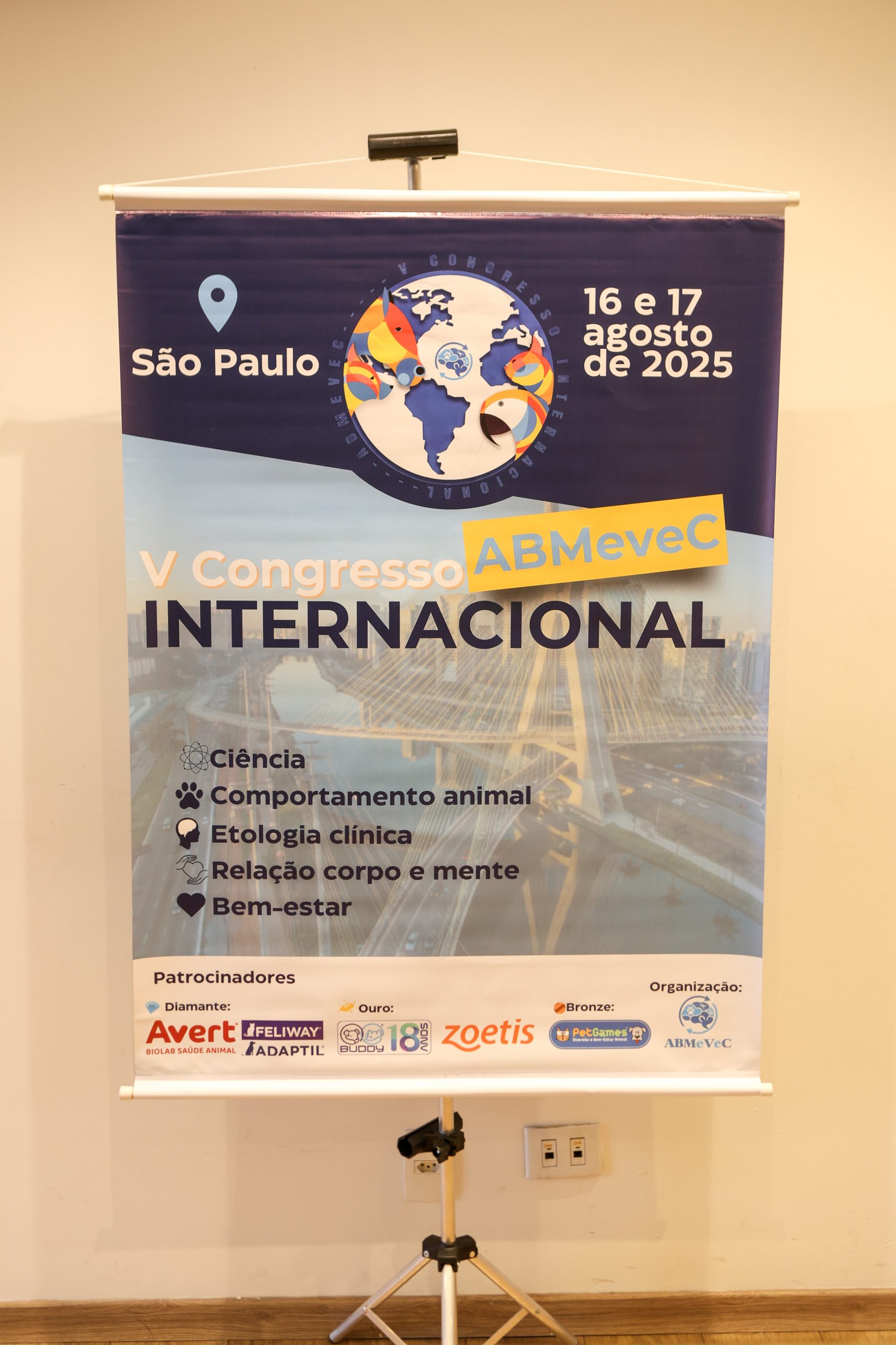 Nos dias 16 e 17 de agosto de 2025, tivemos o privilégio de realizar o V Congresso Internacional da ABMeVeC, um dos principais encontros técnico-científicos da área de comportamento animal no Brasil, promovido pela Associação Brasileira de Medicina Veterinária Comportamental. O evento reuniu profissionais, pesquisadores, docentes e estudantes para debater, compartilhar e consolidar avanços científicos no campo da etologia clínica, bem-estar animal e tratamentos comportamentais.
