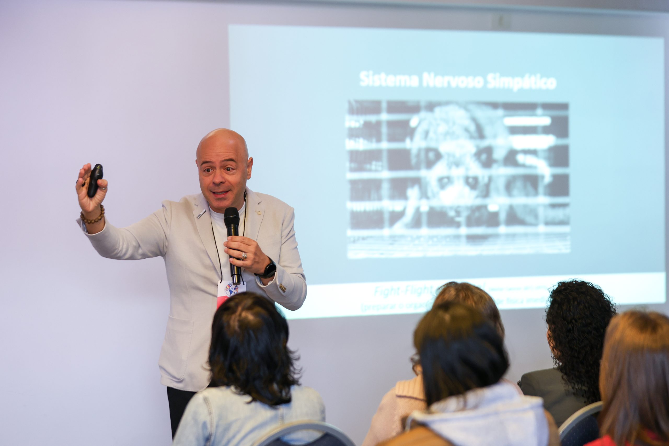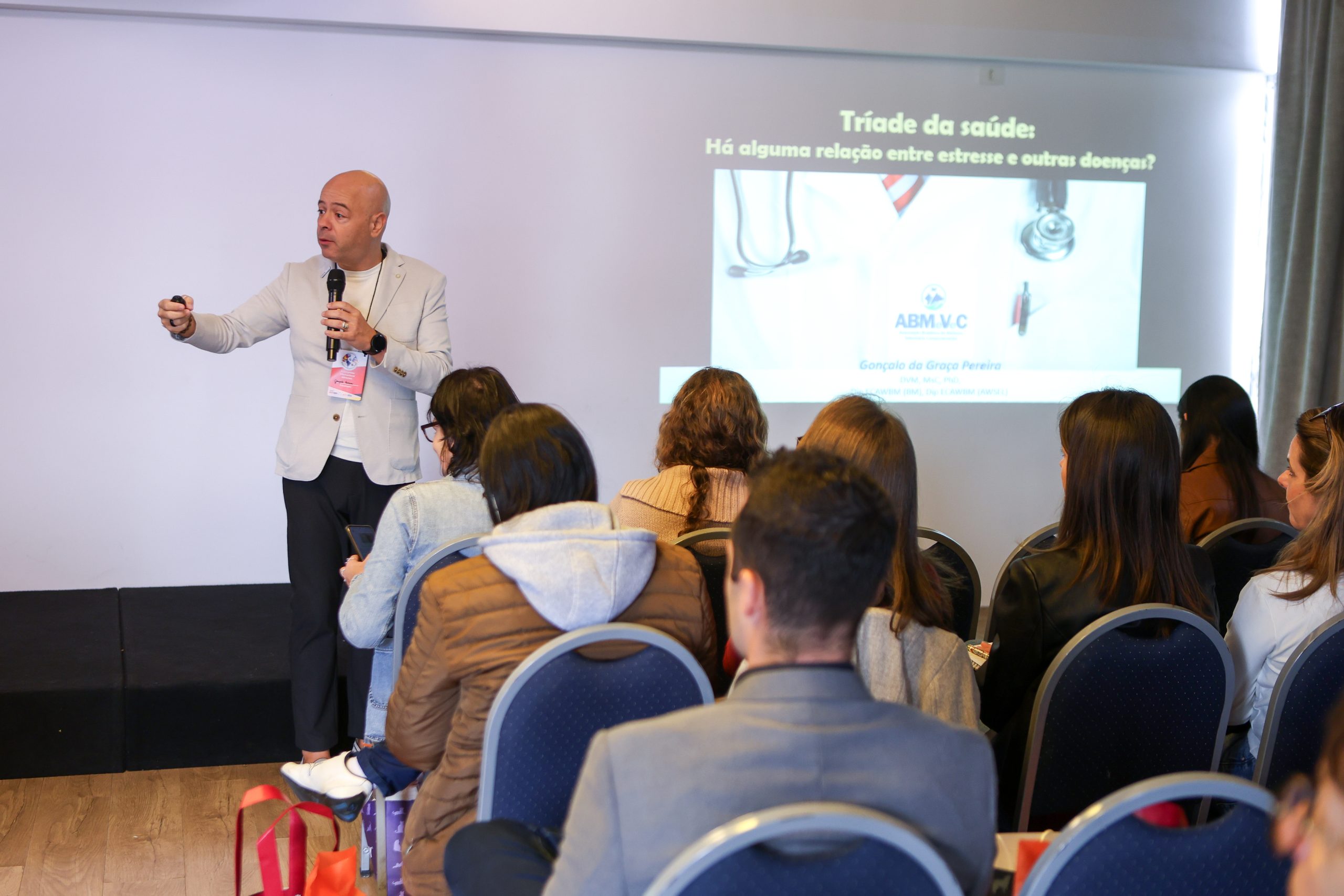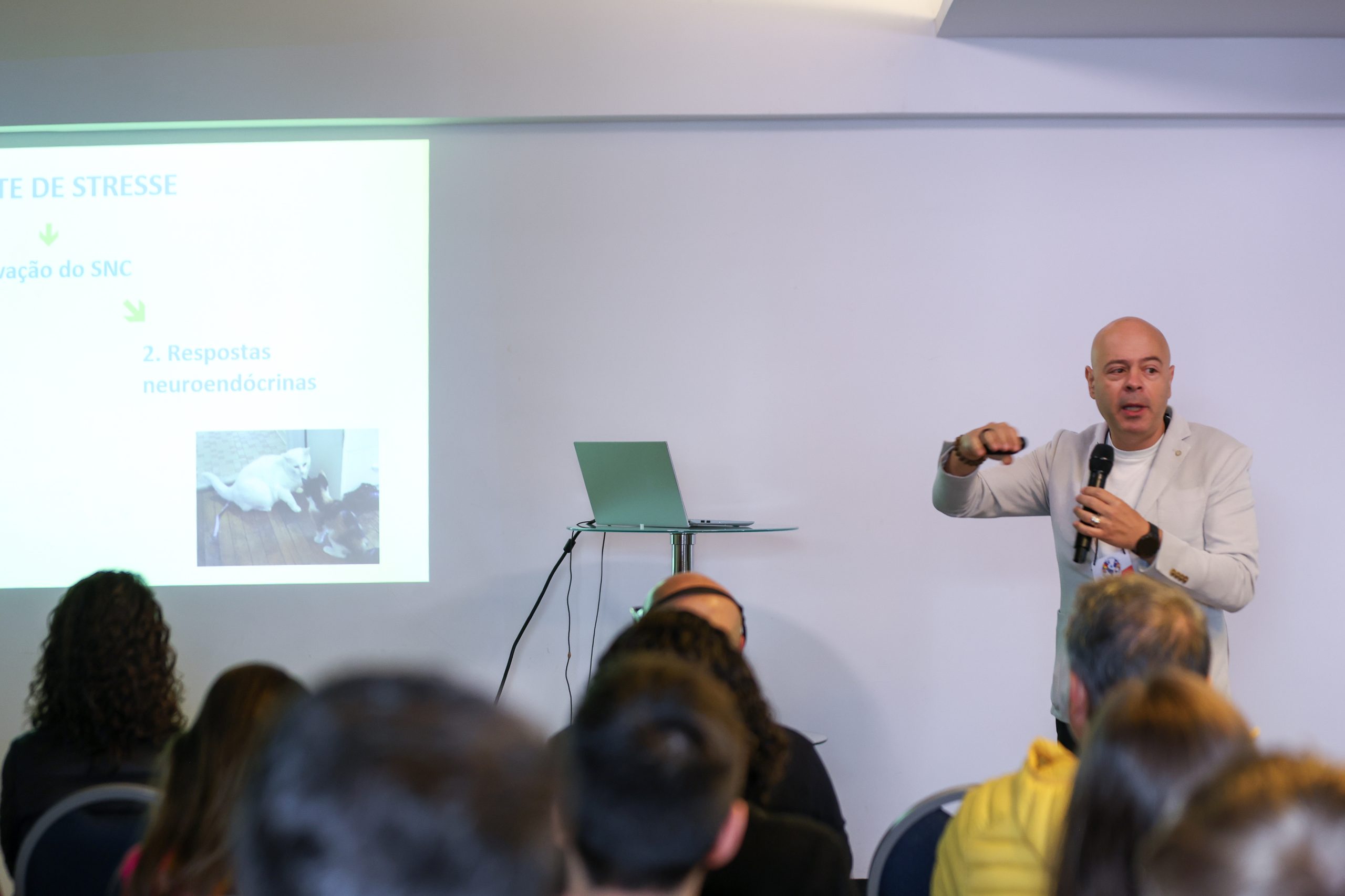 O dr. Gonçalo da Graça Pereira trouxe uma reflexão aprofundada sobre a tríade da saúde — corpo, mente e comportamento animal — e suas implicações para a prática clínica baseada em evidências.