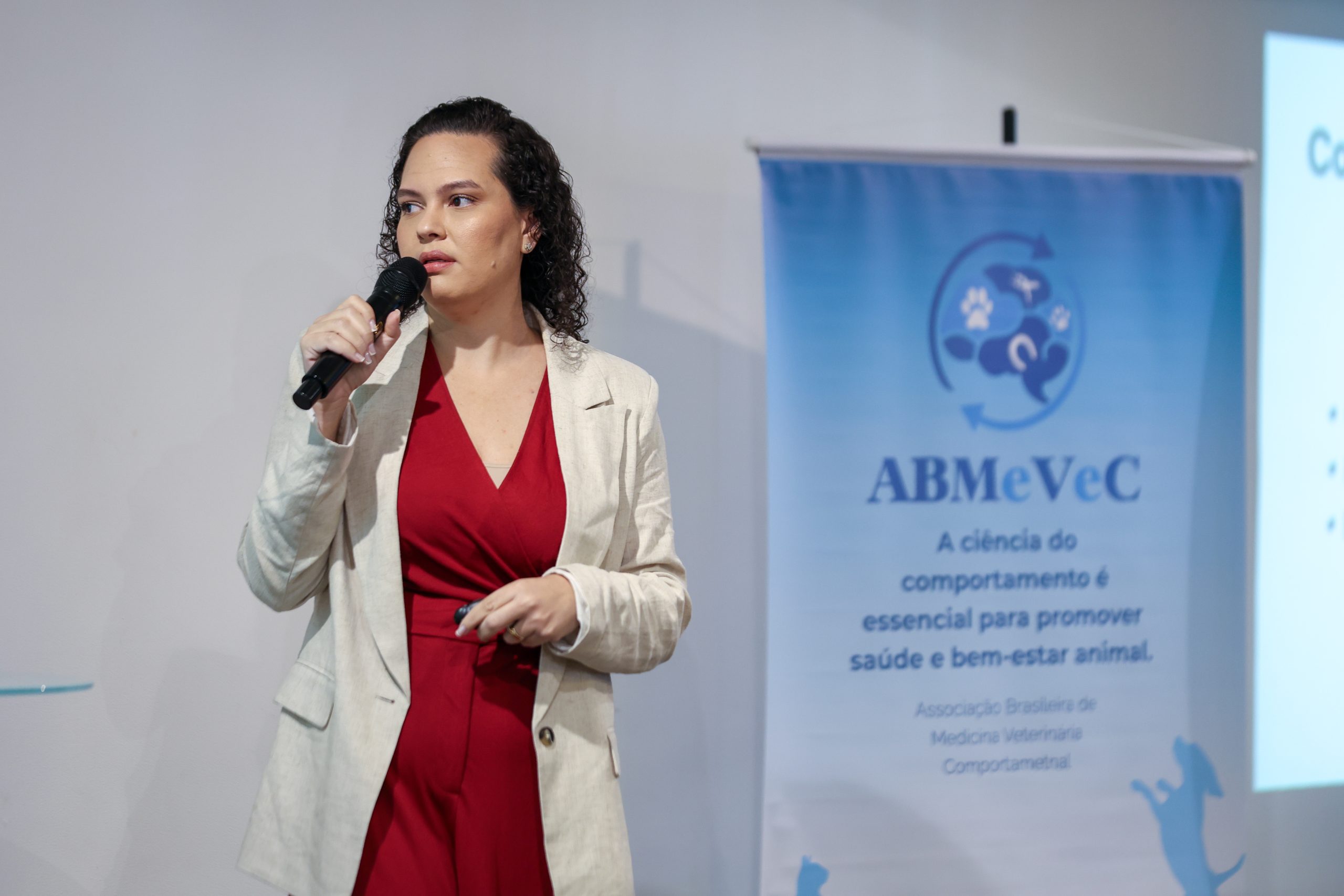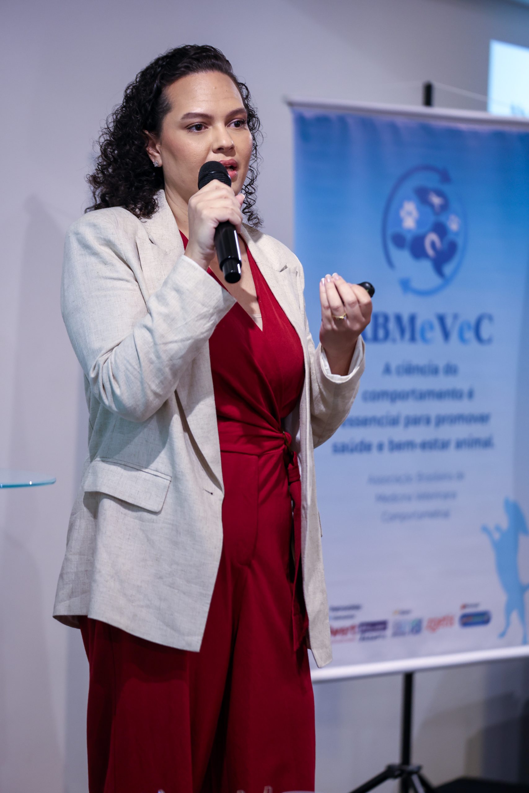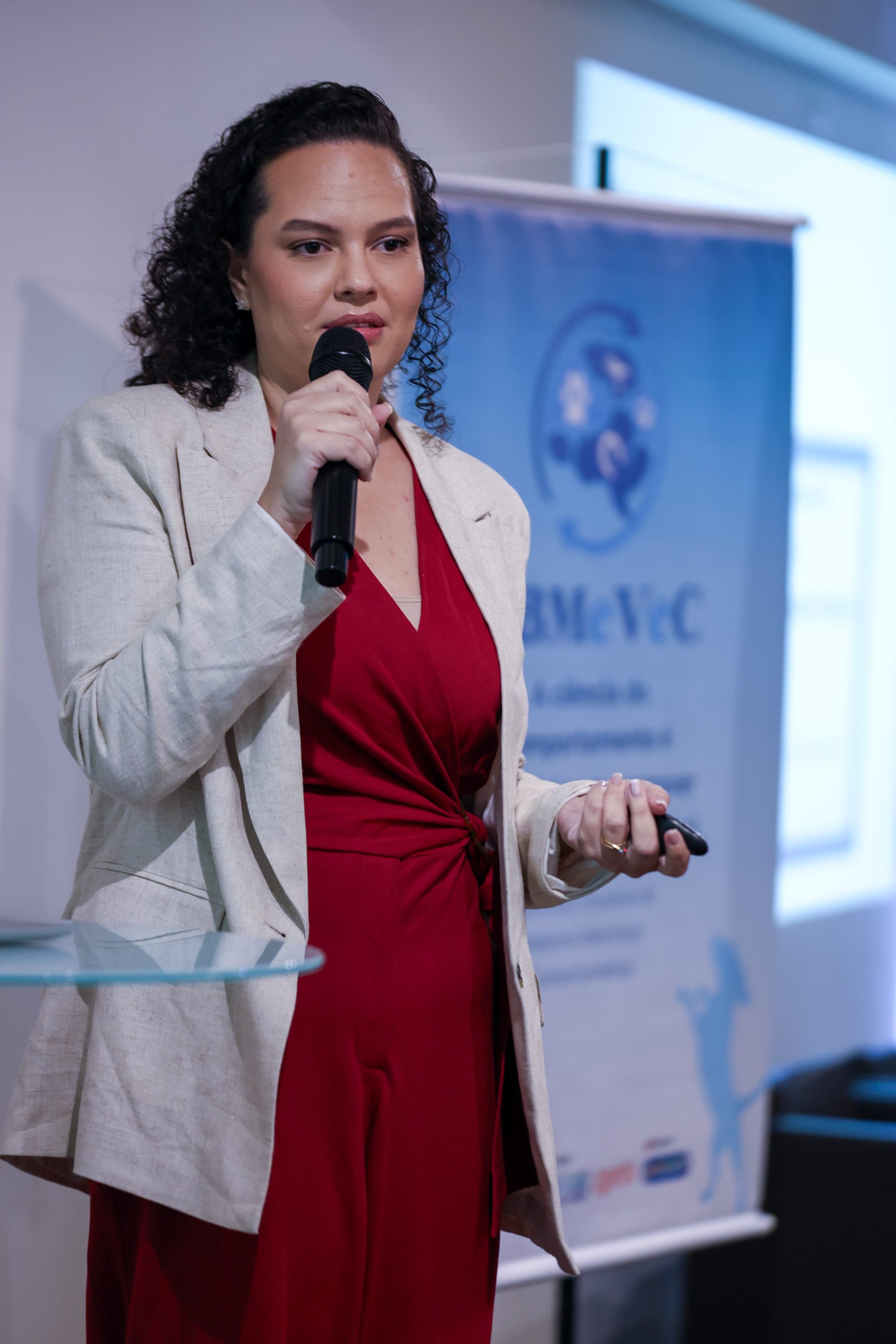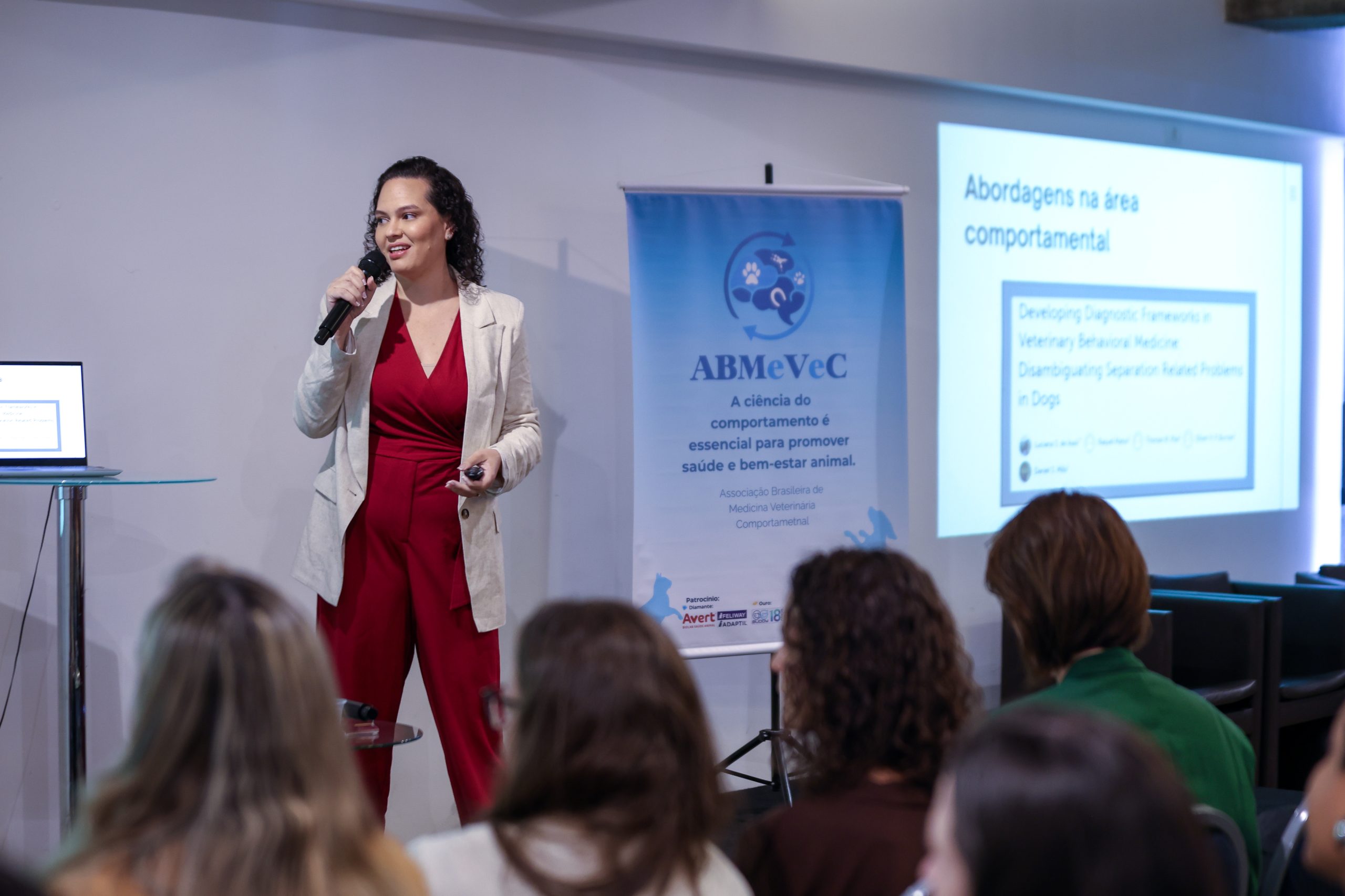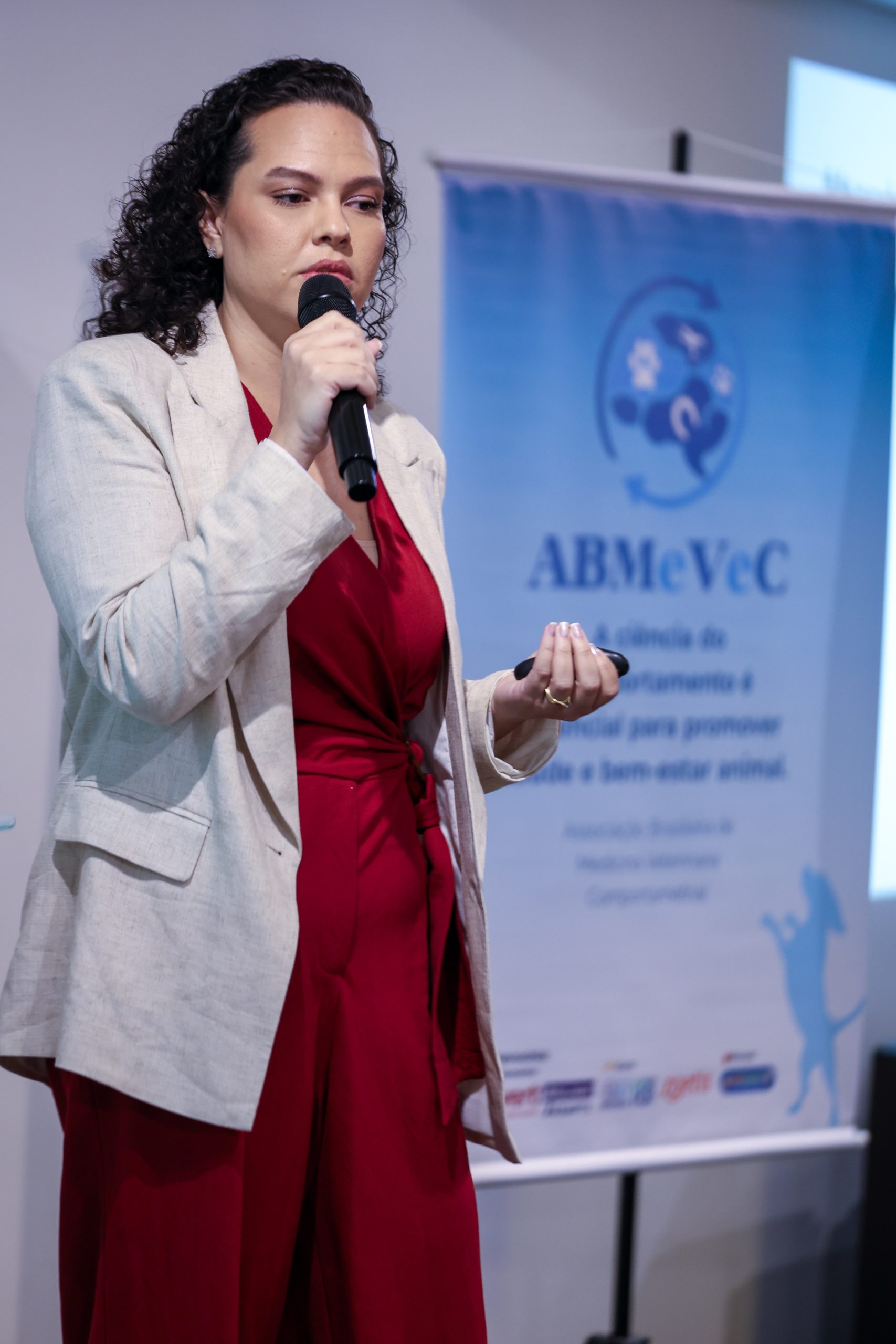 A dra. Daniela Ramos conduziu sessão sobre etologia clínica baseada em ciência, reforçando a necessidade de avaliação crítica das práticas diagnósticas e de intervenção comportamental com suporte em literatura e dados científicos.