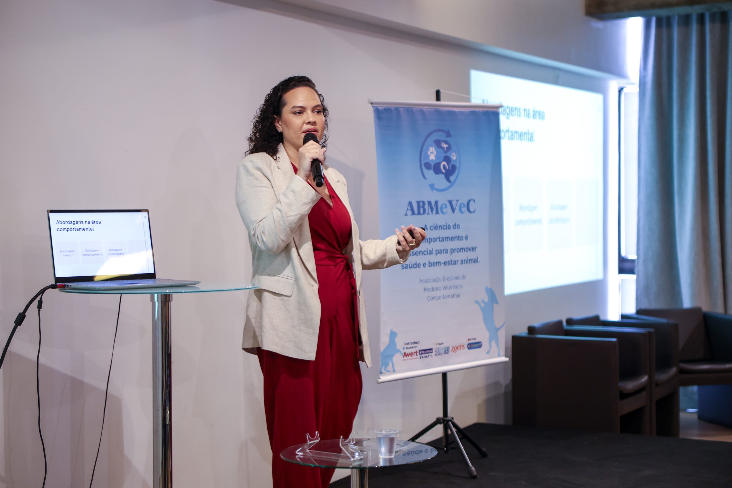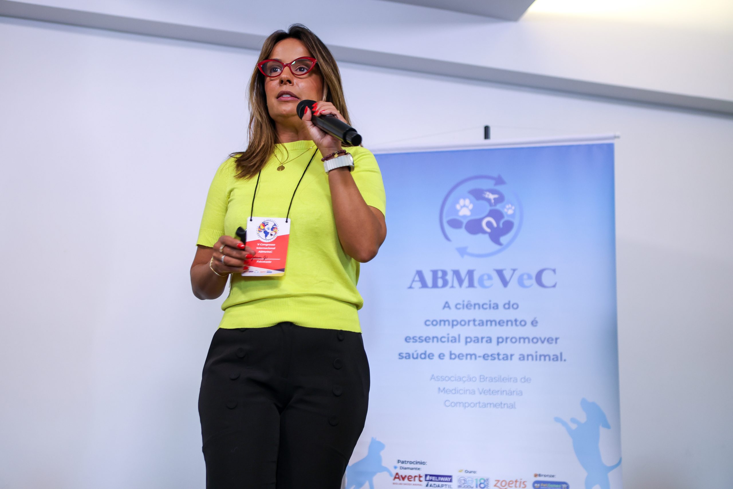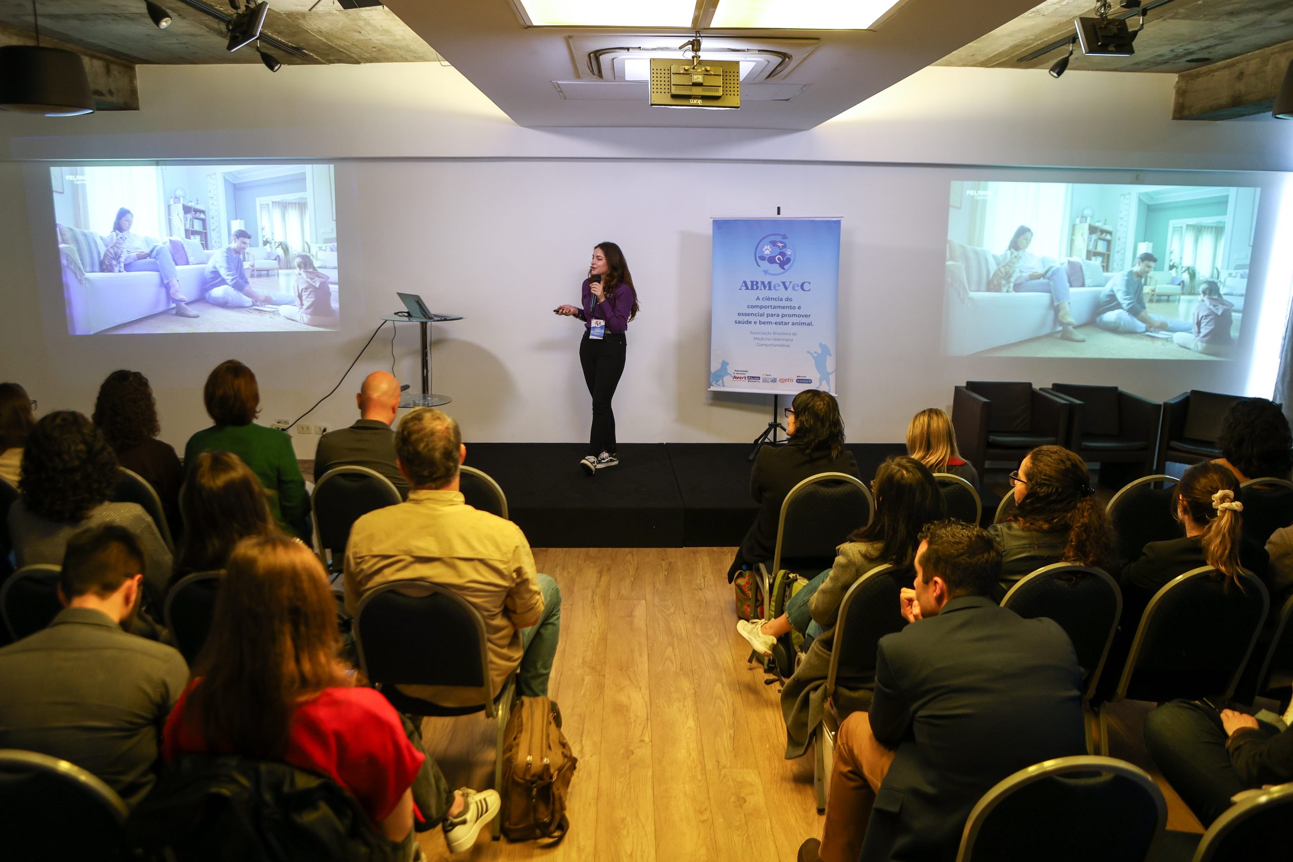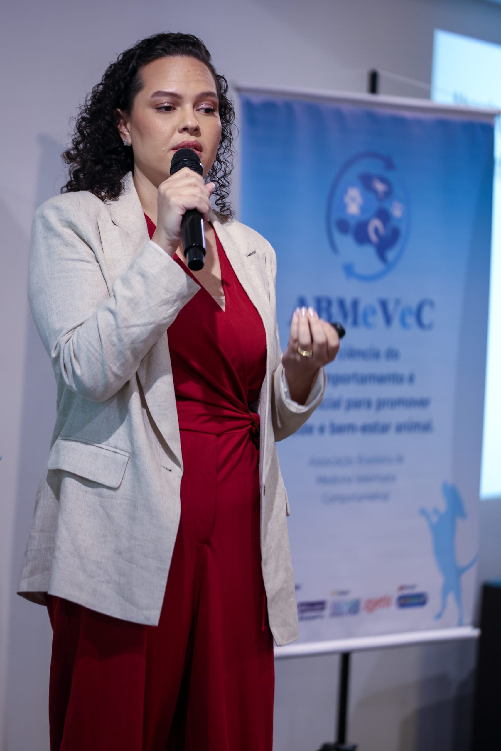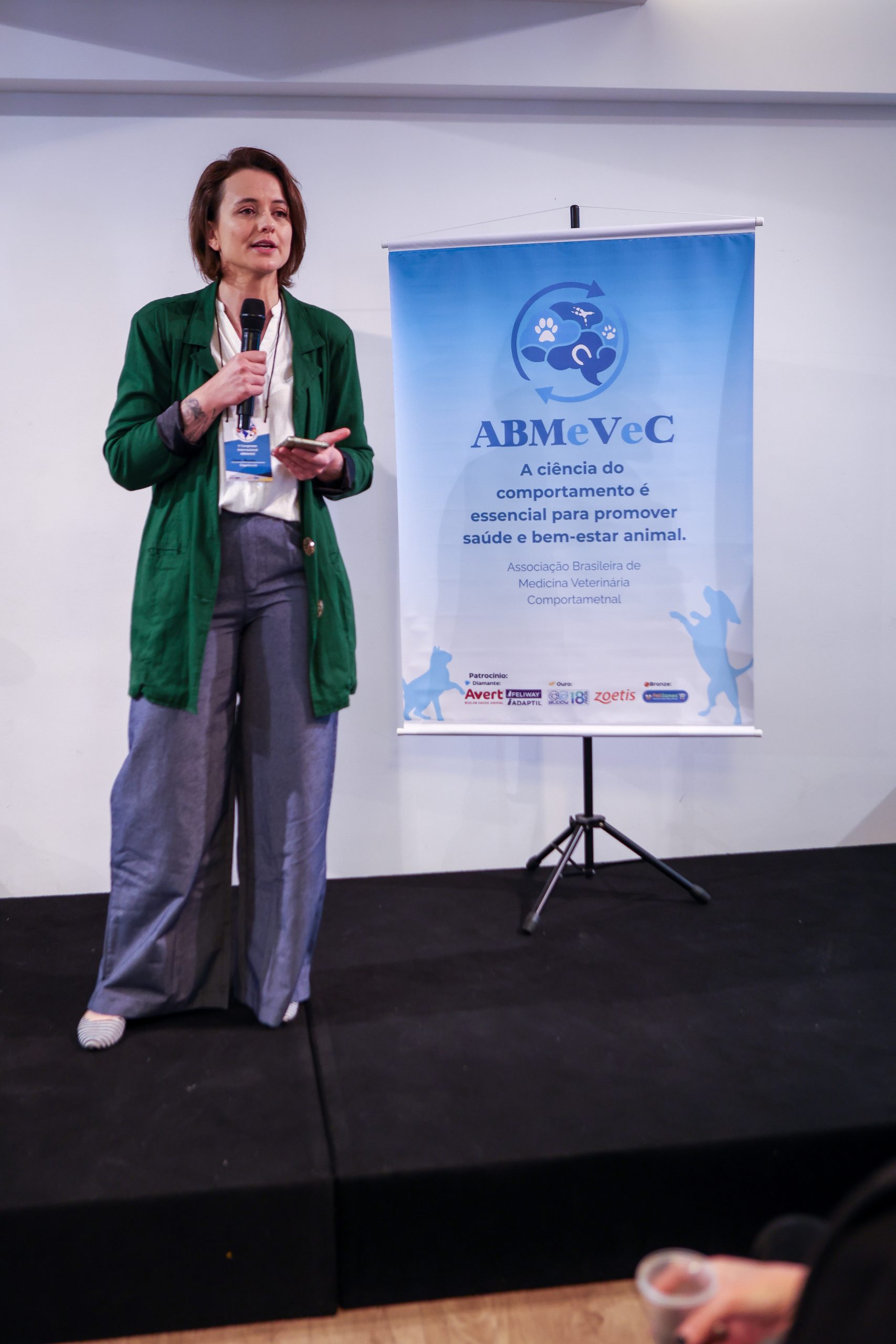 A dra. Daniela Ramos conduziu sessão sobre etologia clínica baseada em ciência, reforçando a necessidade de avaliação crítica das práticas diagnósticas e de intervenção comportamental com suporte em literatura e dados científicos.