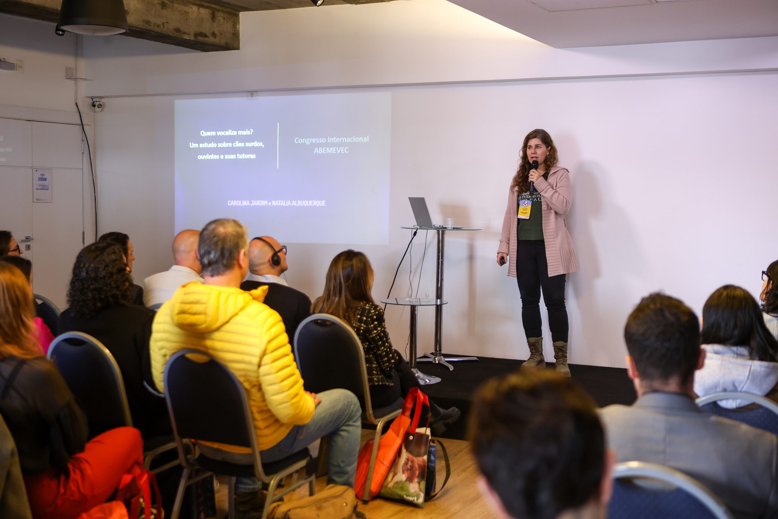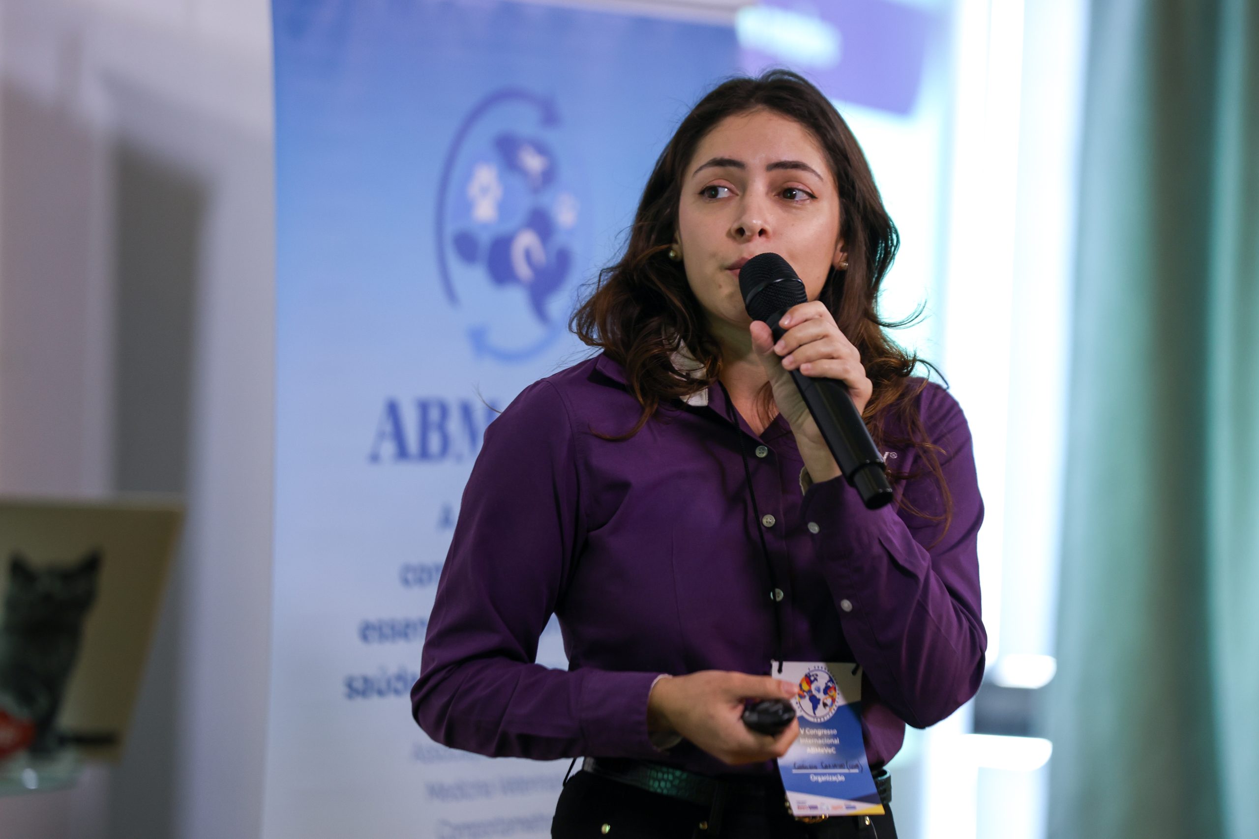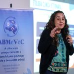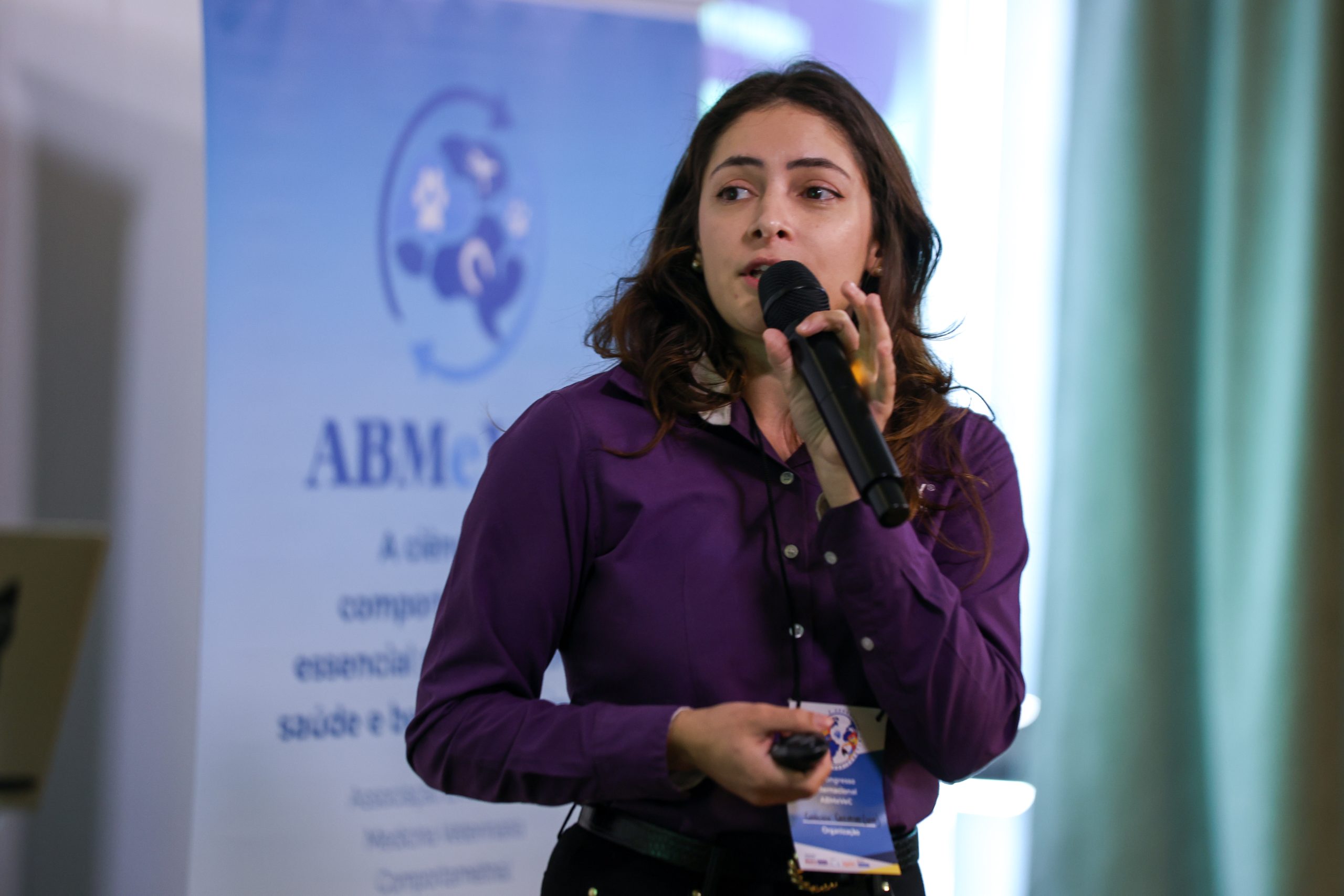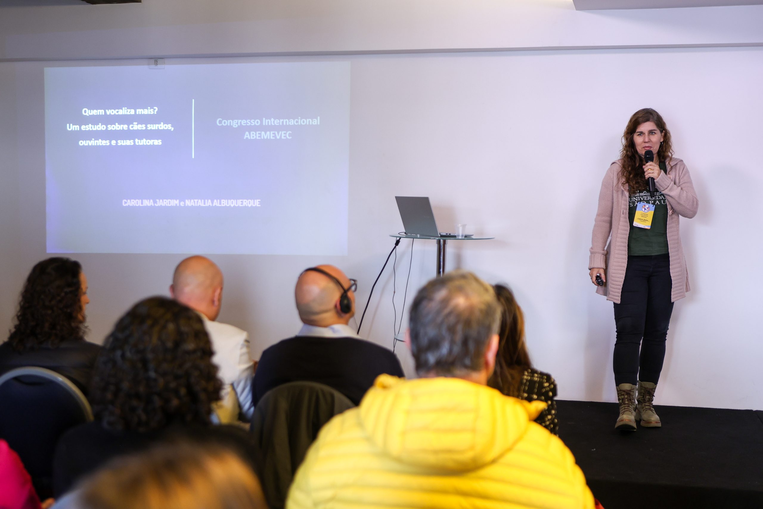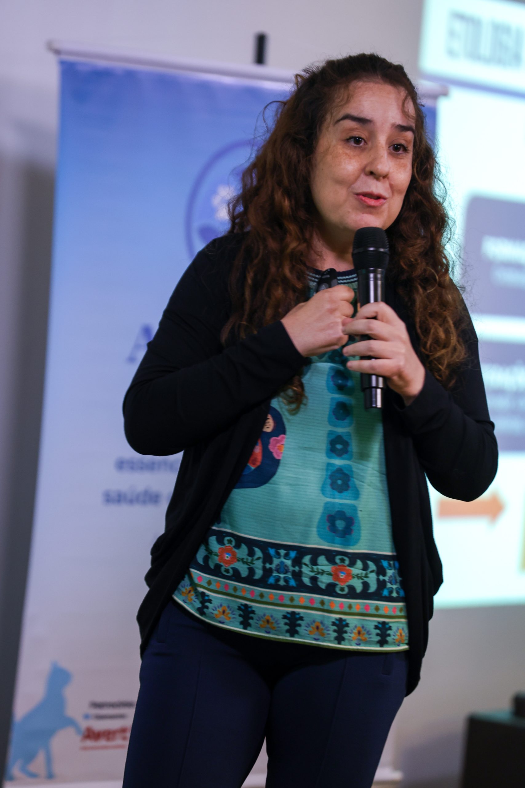 A dra. Daniela Ramos conduziu sessão sobre etologia clínica baseada em ciência, reforçando a necessidade de avaliação crítica das práticas diagnósticas e de intervenção comportamental com suporte em literatura e dados científicos.