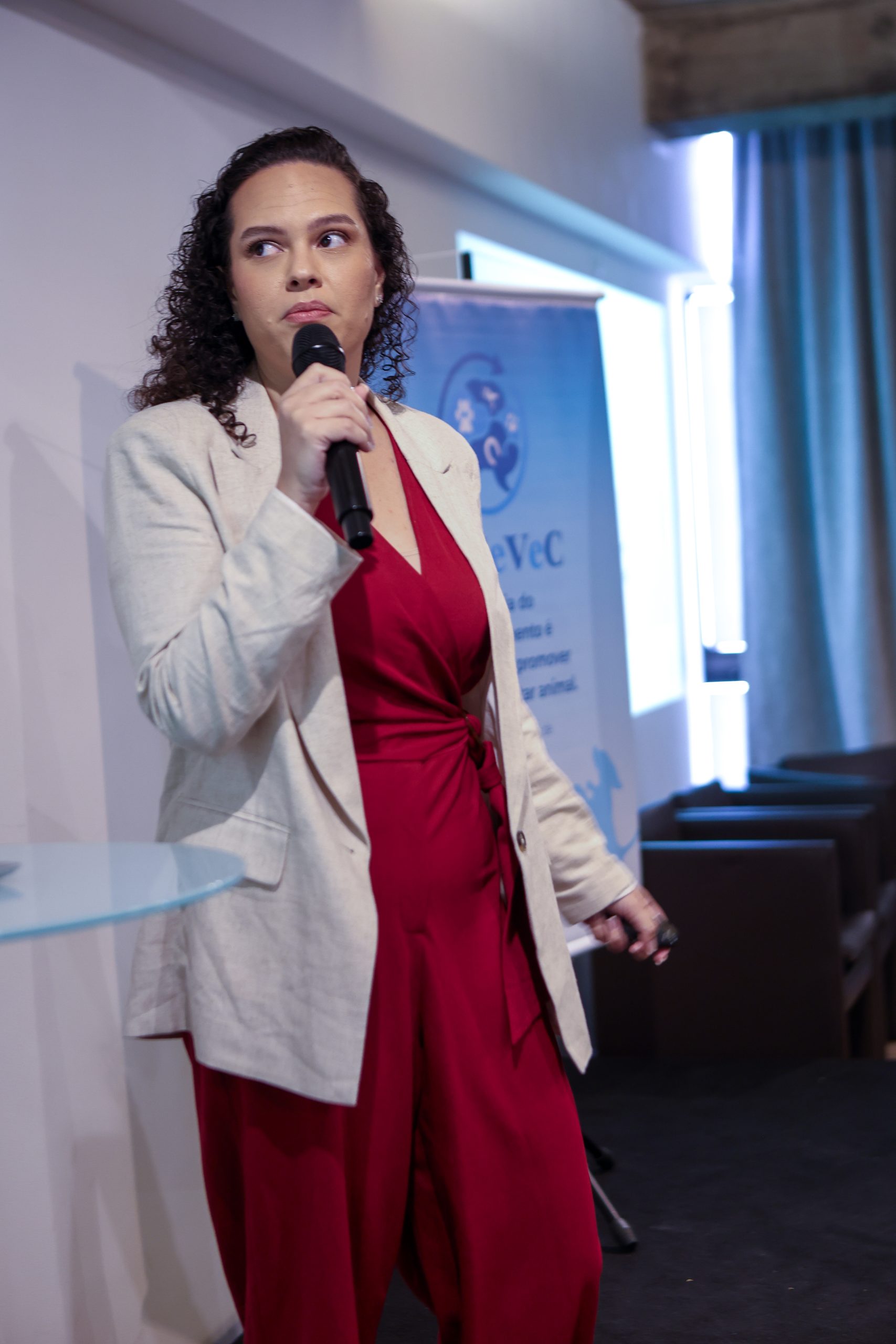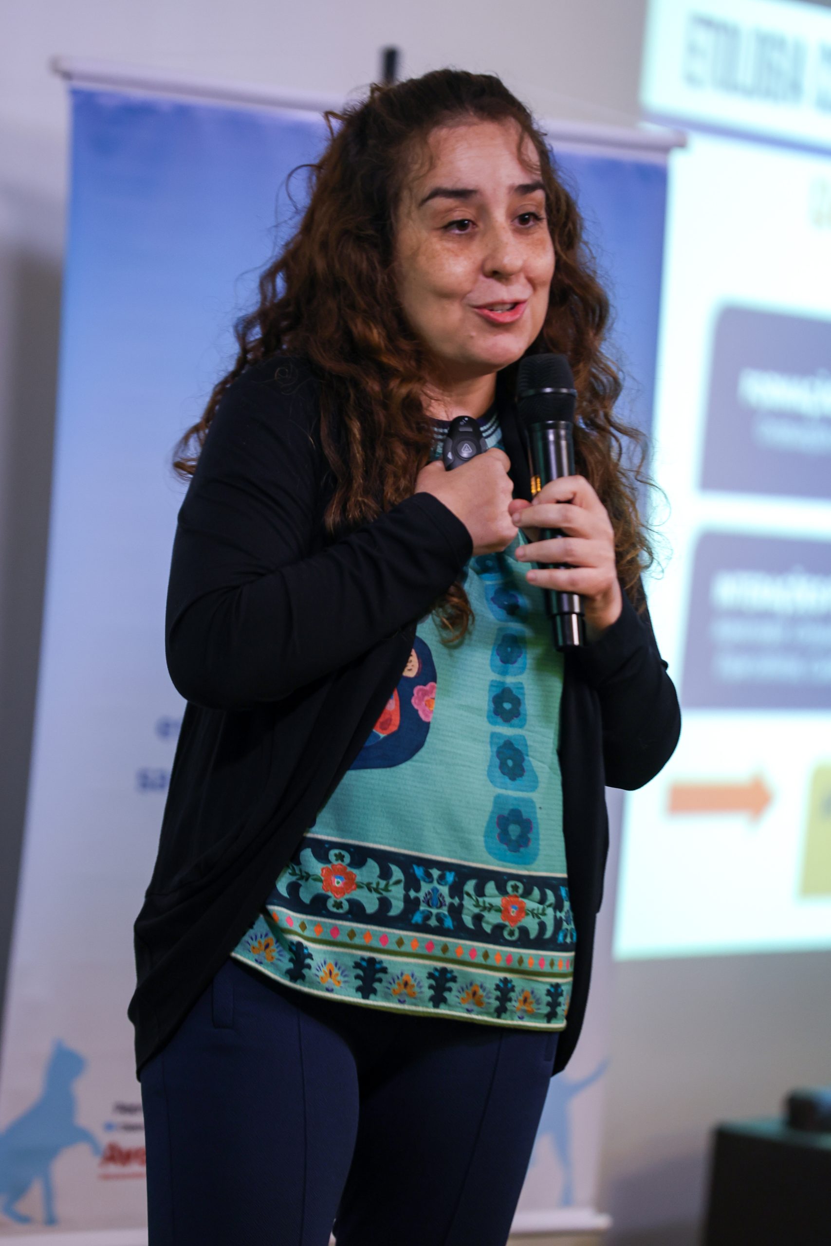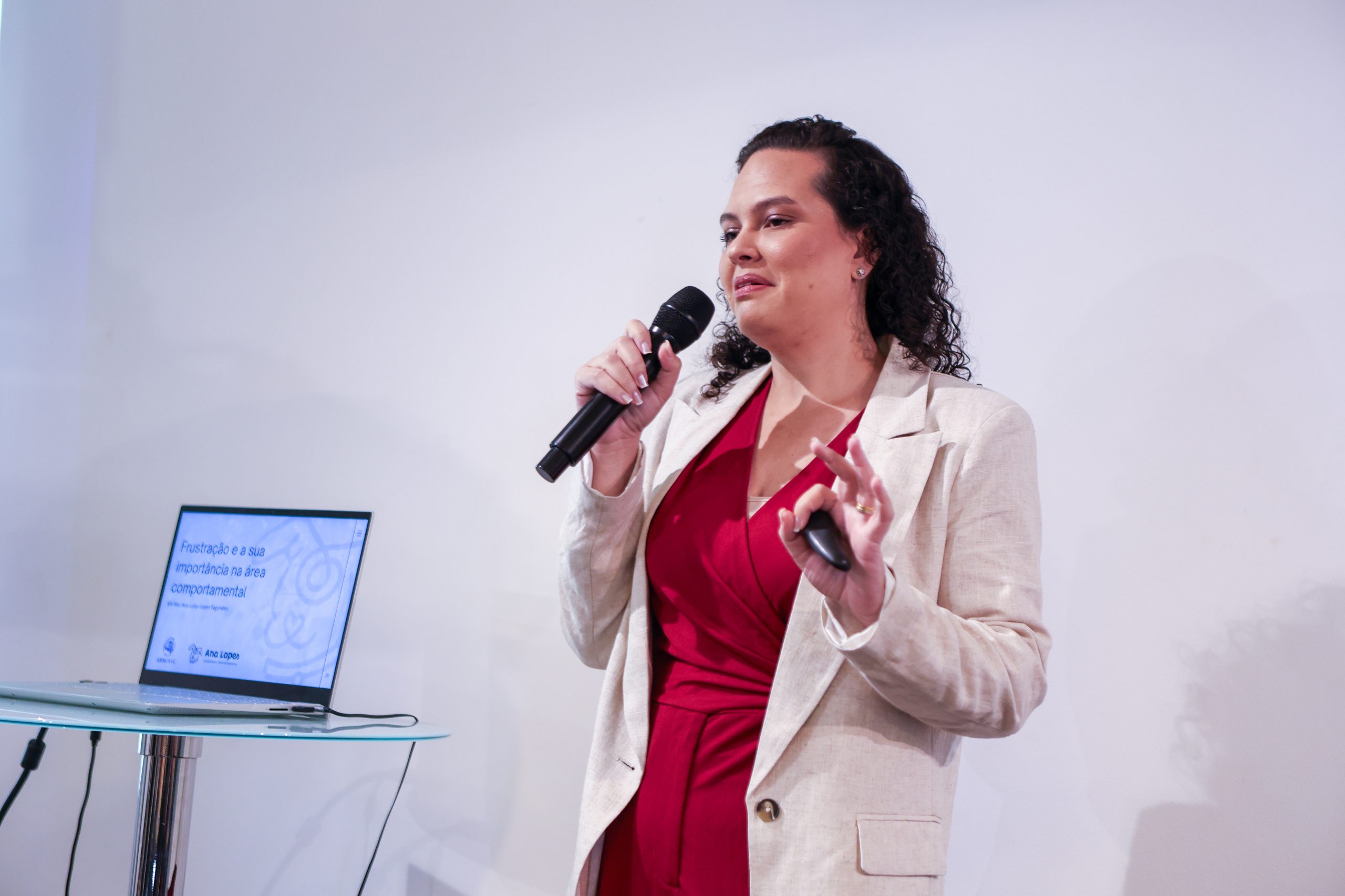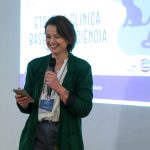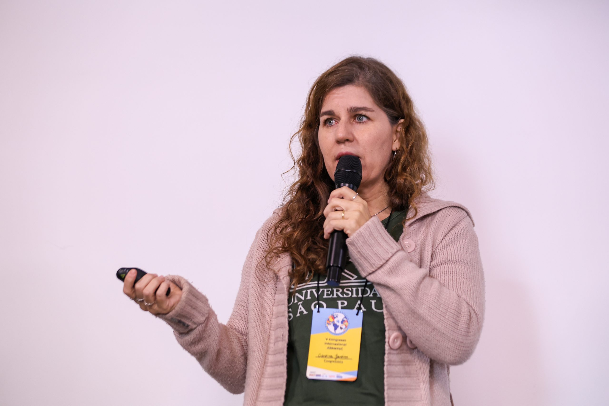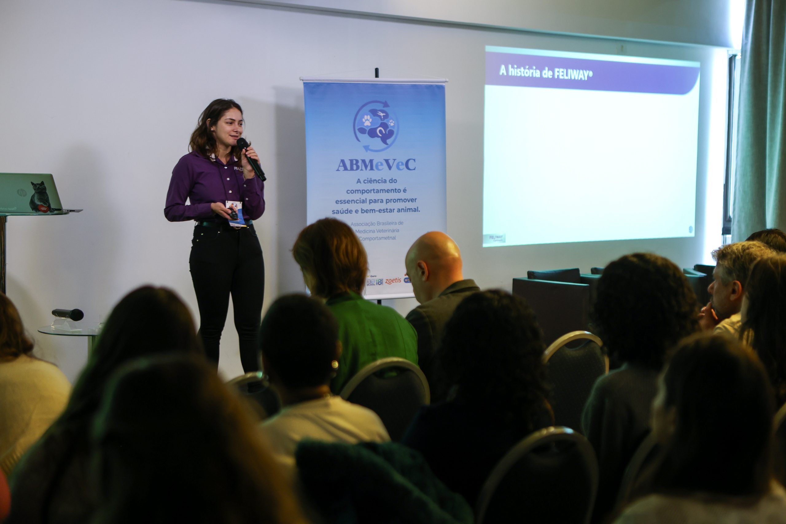 A dra. Daniela Ramos conduziu sessão sobre etologia clínica baseada em ciência, reforçando a necessidade de avaliação crítica das práticas diagnósticas e de intervenção comportamental com suporte em literatura e dados científicos.