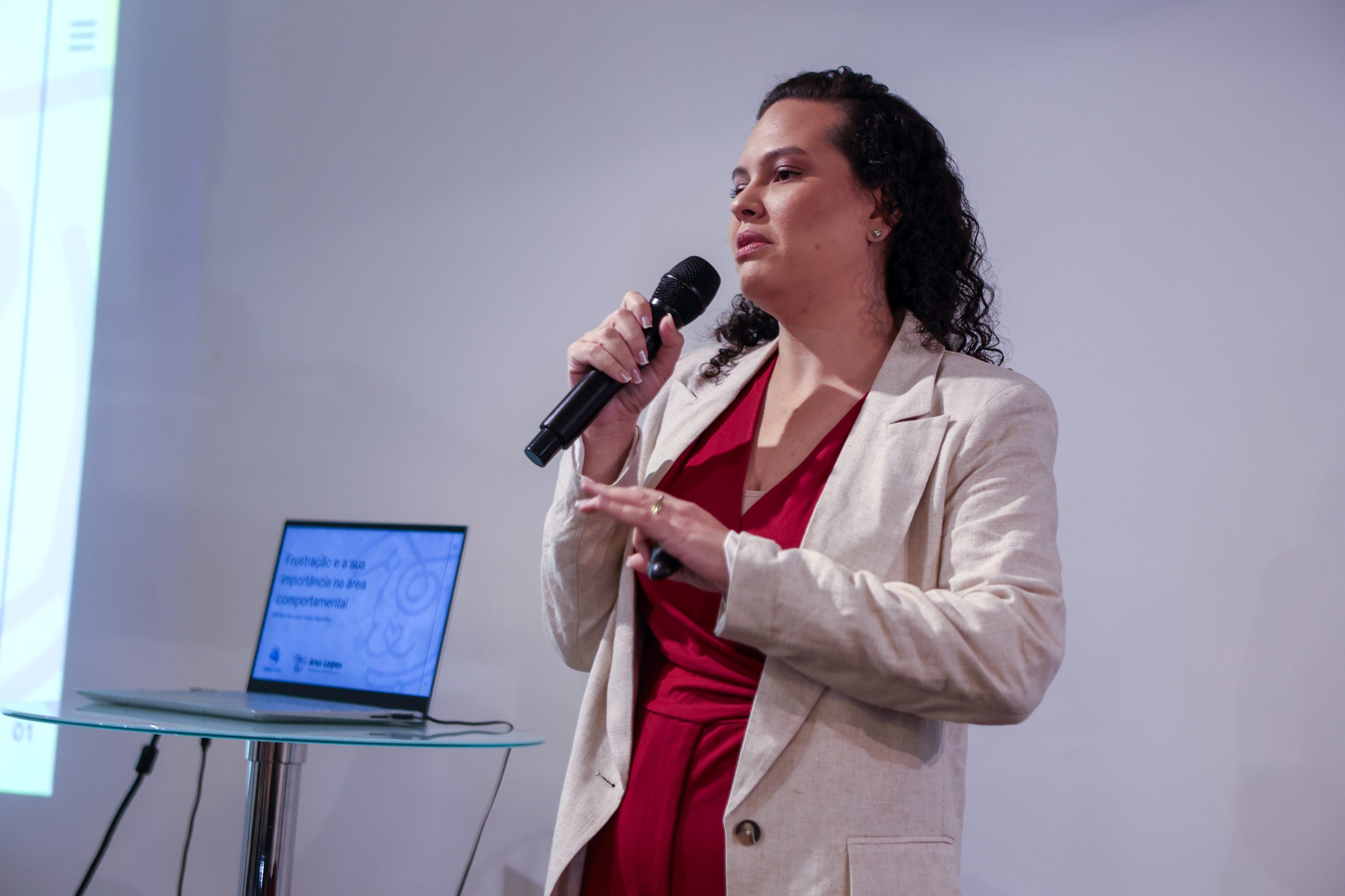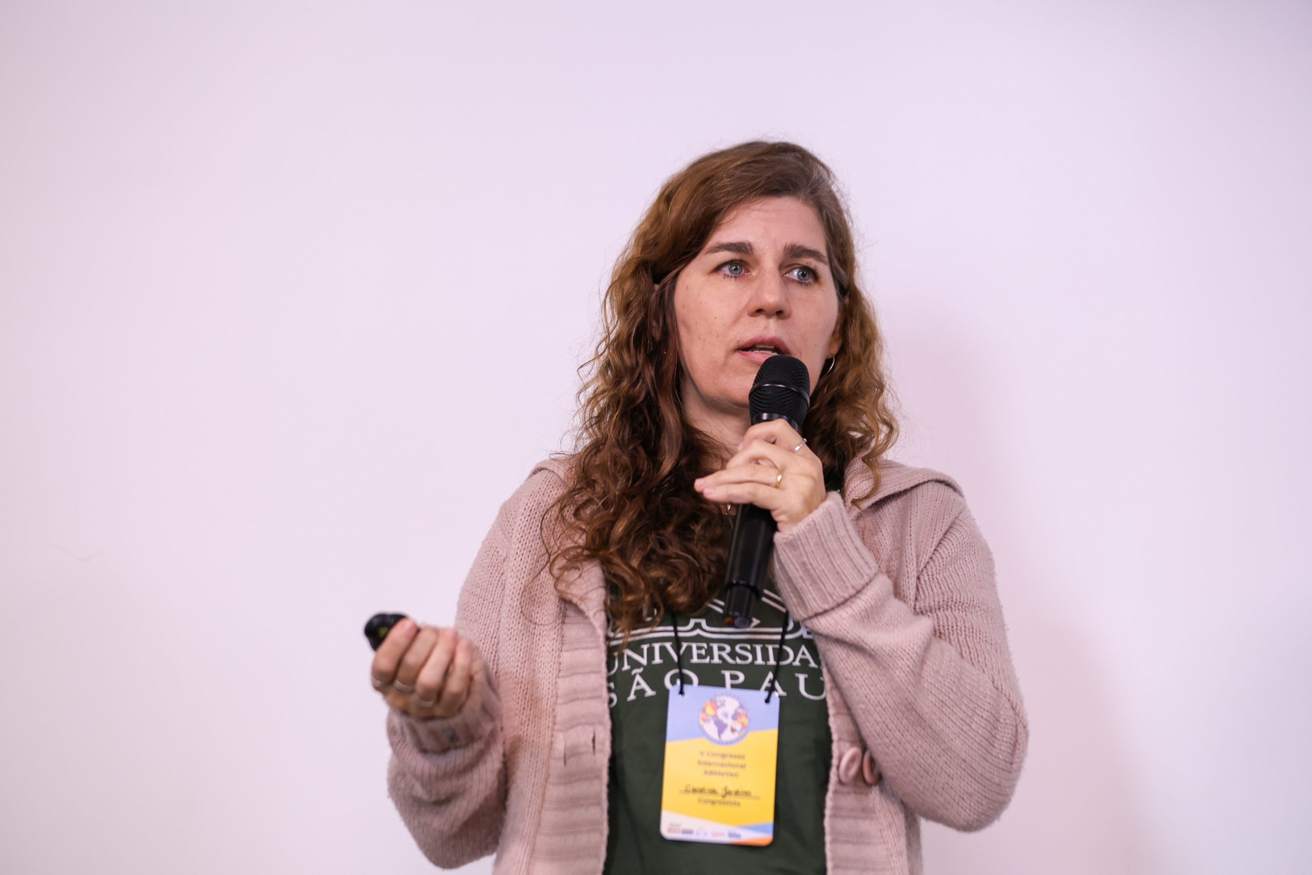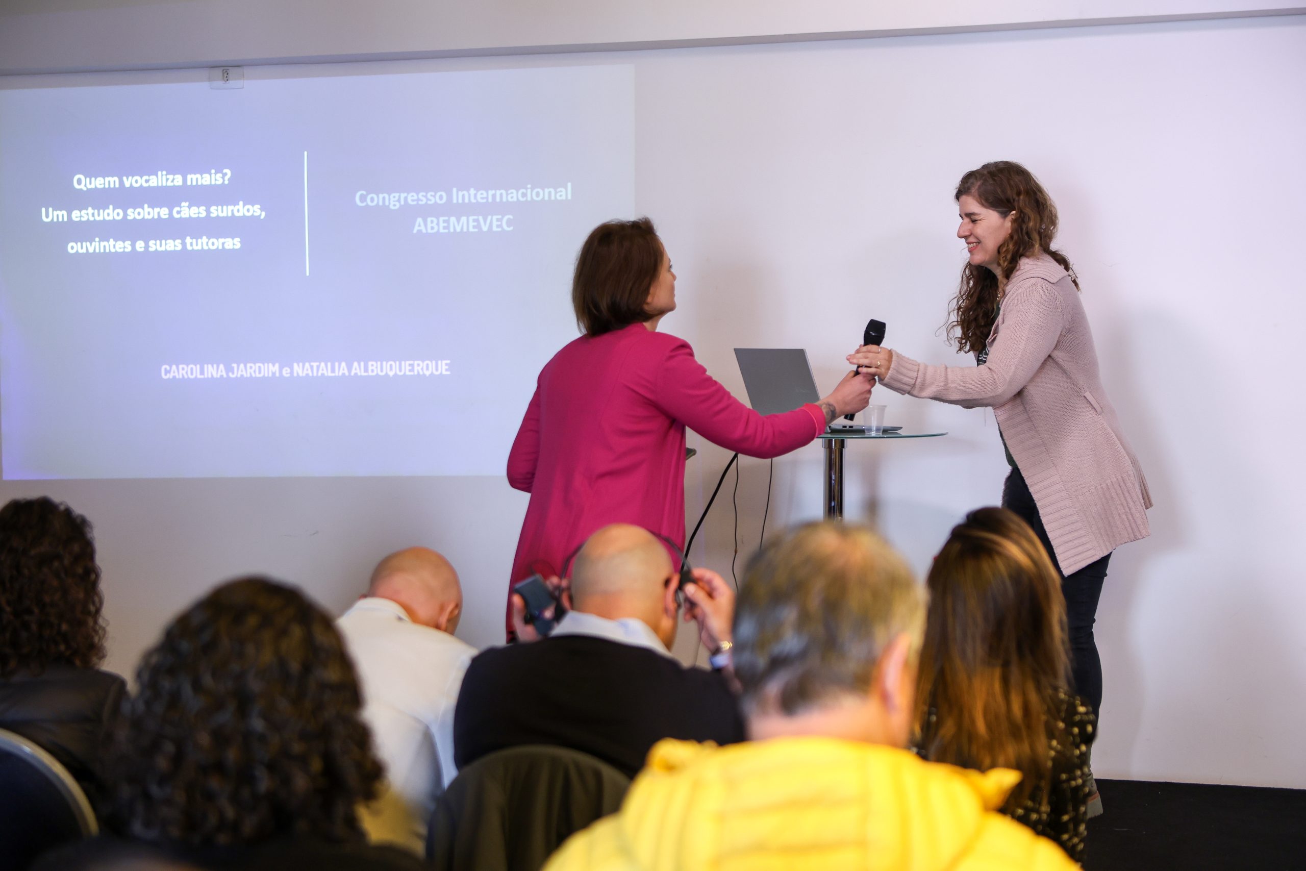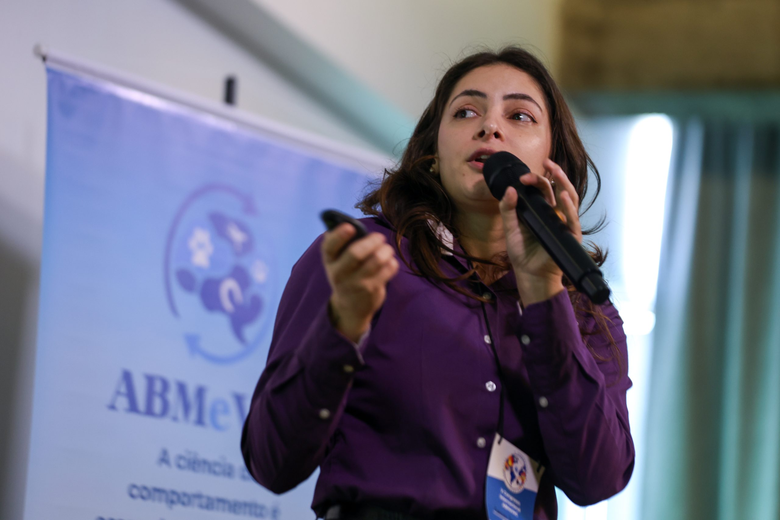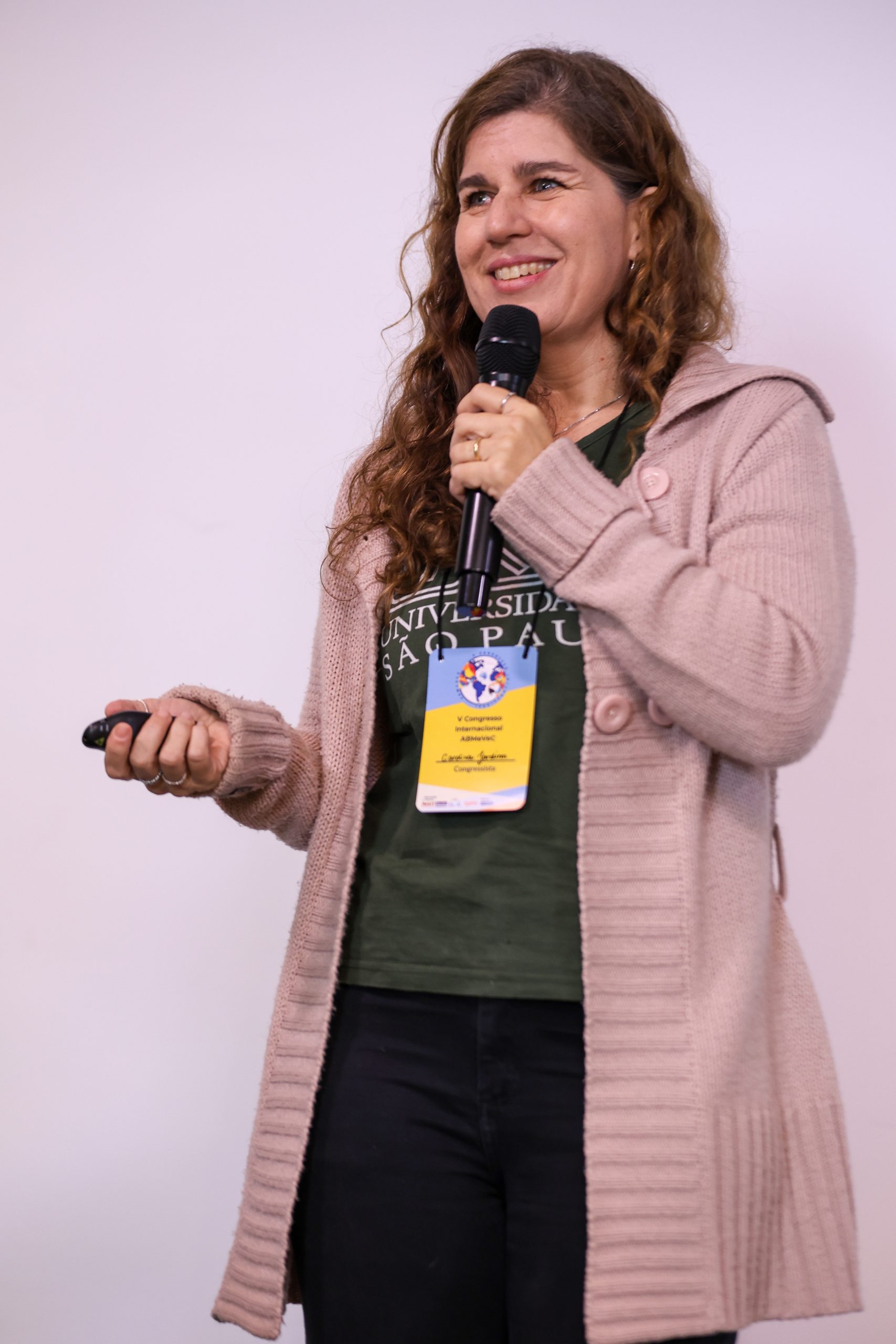 A dra. Daniela Ramos conduziu sessão sobre etologia clínica baseada em ciência, reforçando a necessidade de avaliação crítica das práticas diagnósticas e de intervenção comportamental com suporte em literatura e dados científicos.