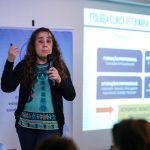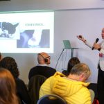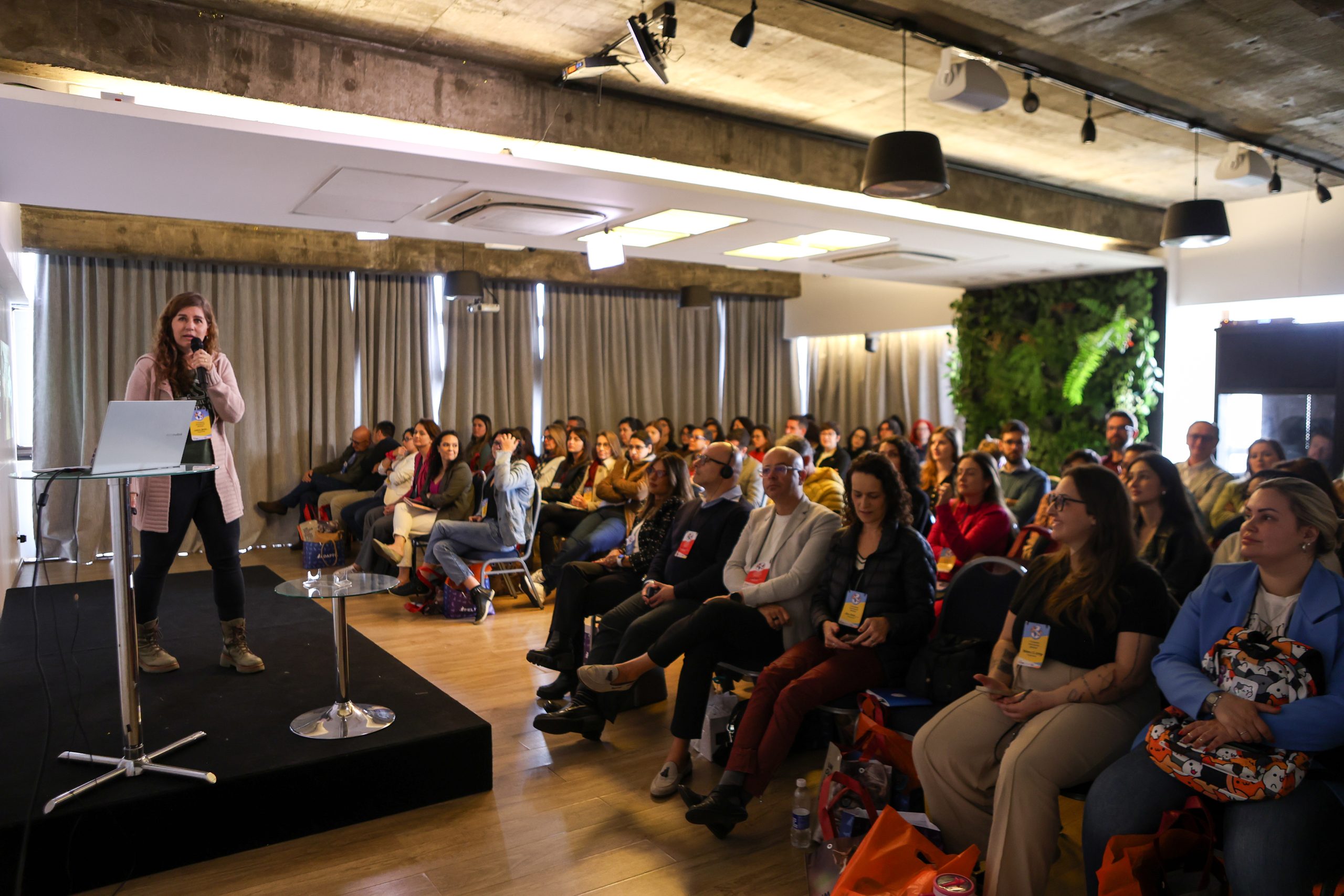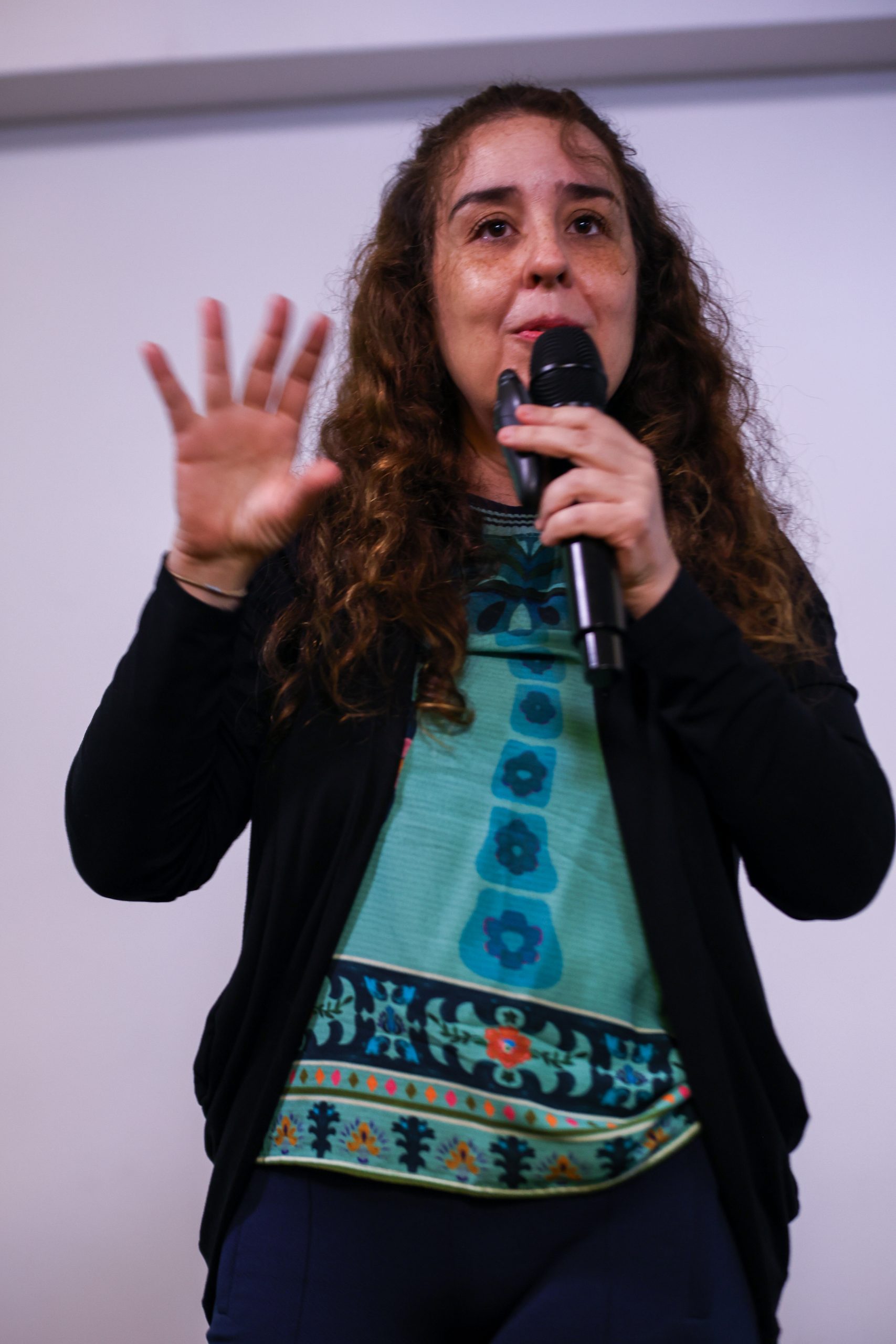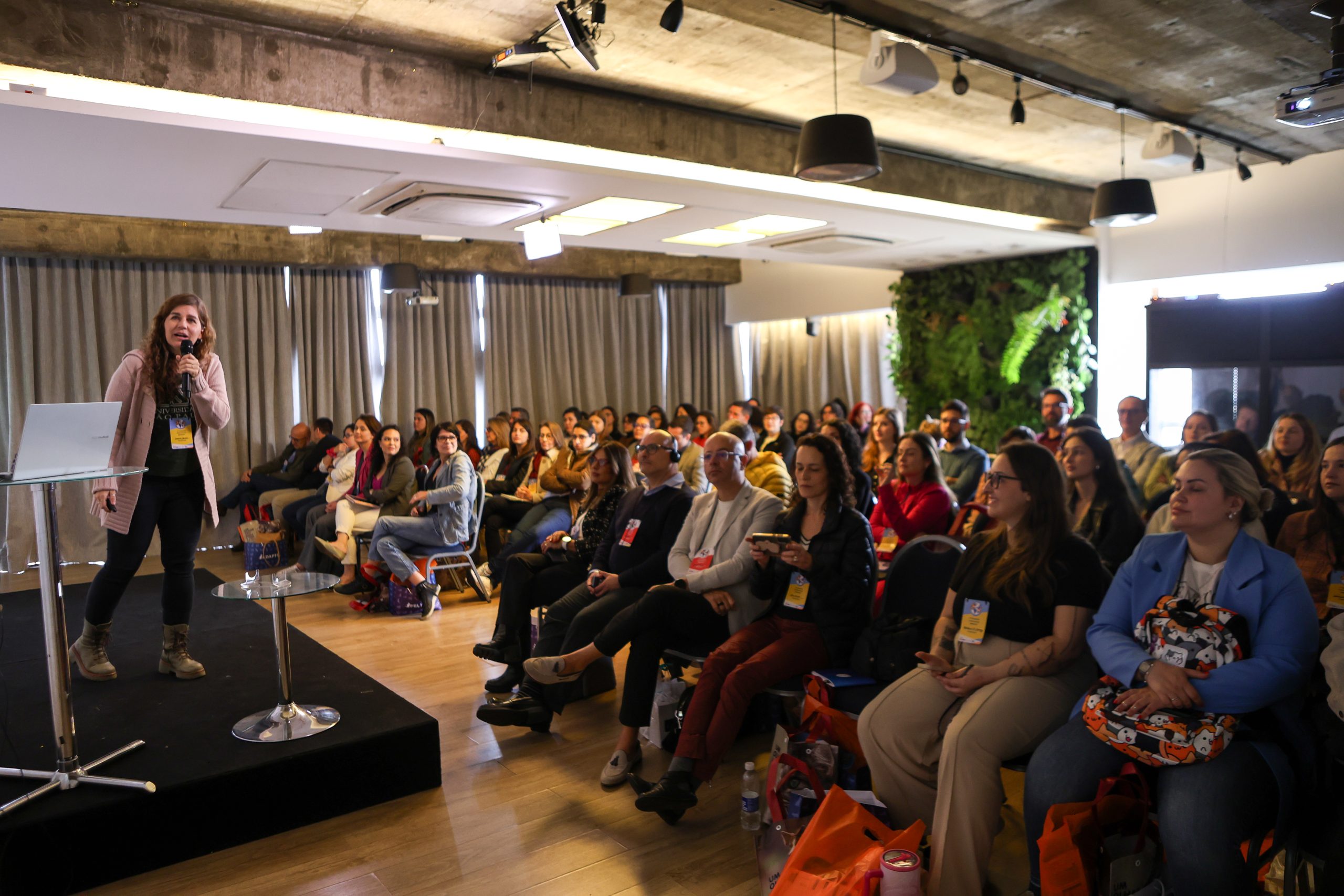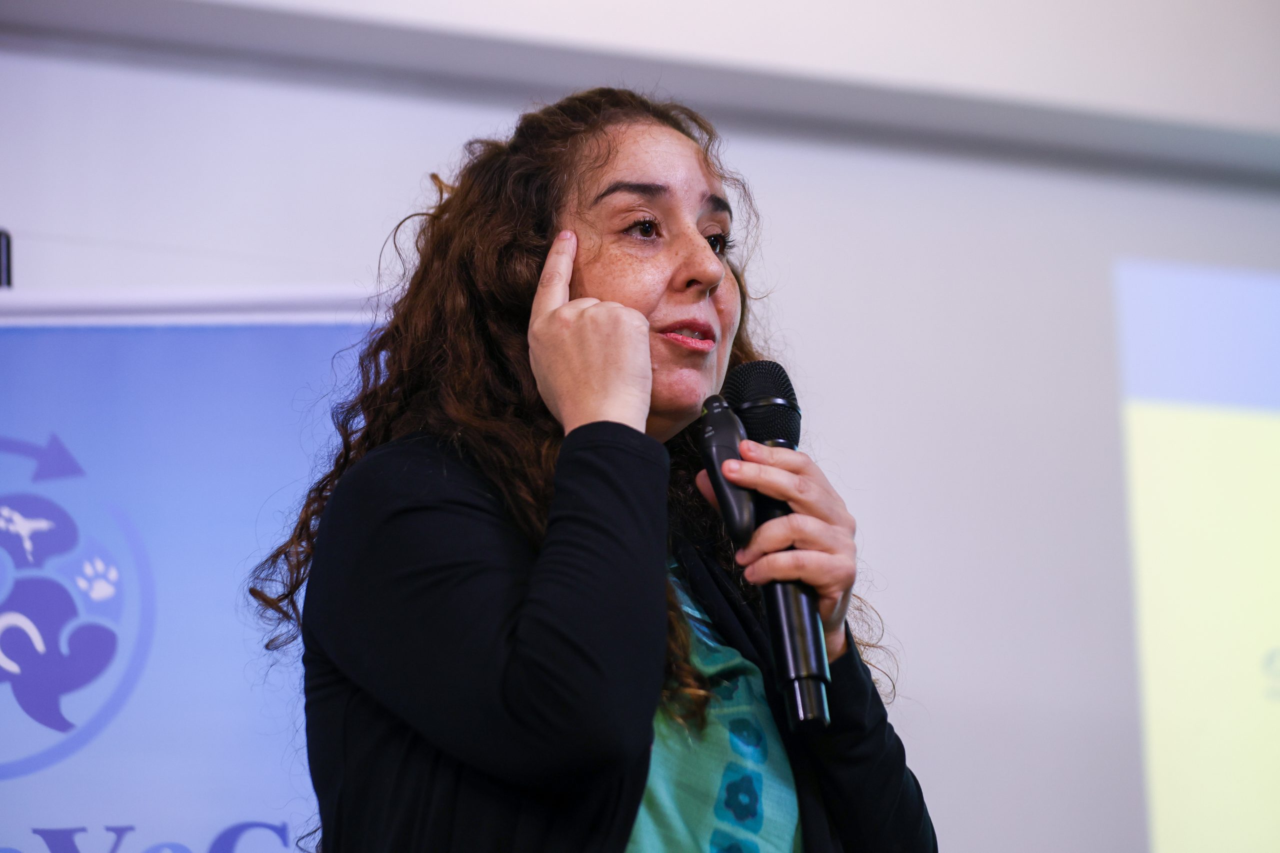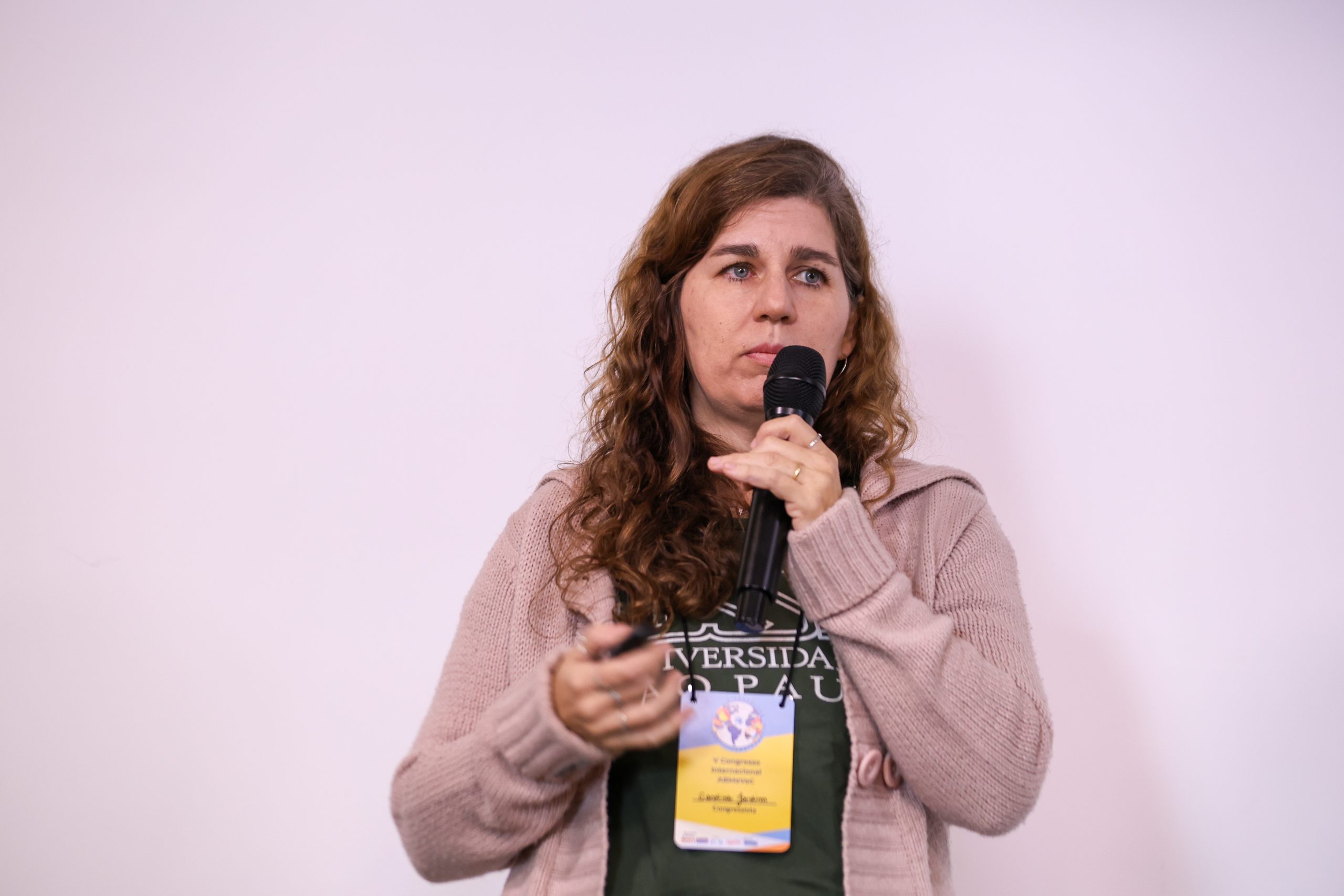 A dra. Daniela Ramos conduziu sessão sobre etologia clínica baseada em ciência, reforçando a necessidade de avaliação crítica das práticas diagnósticas e de intervenção comportamental com suporte em literatura e dados científicos.